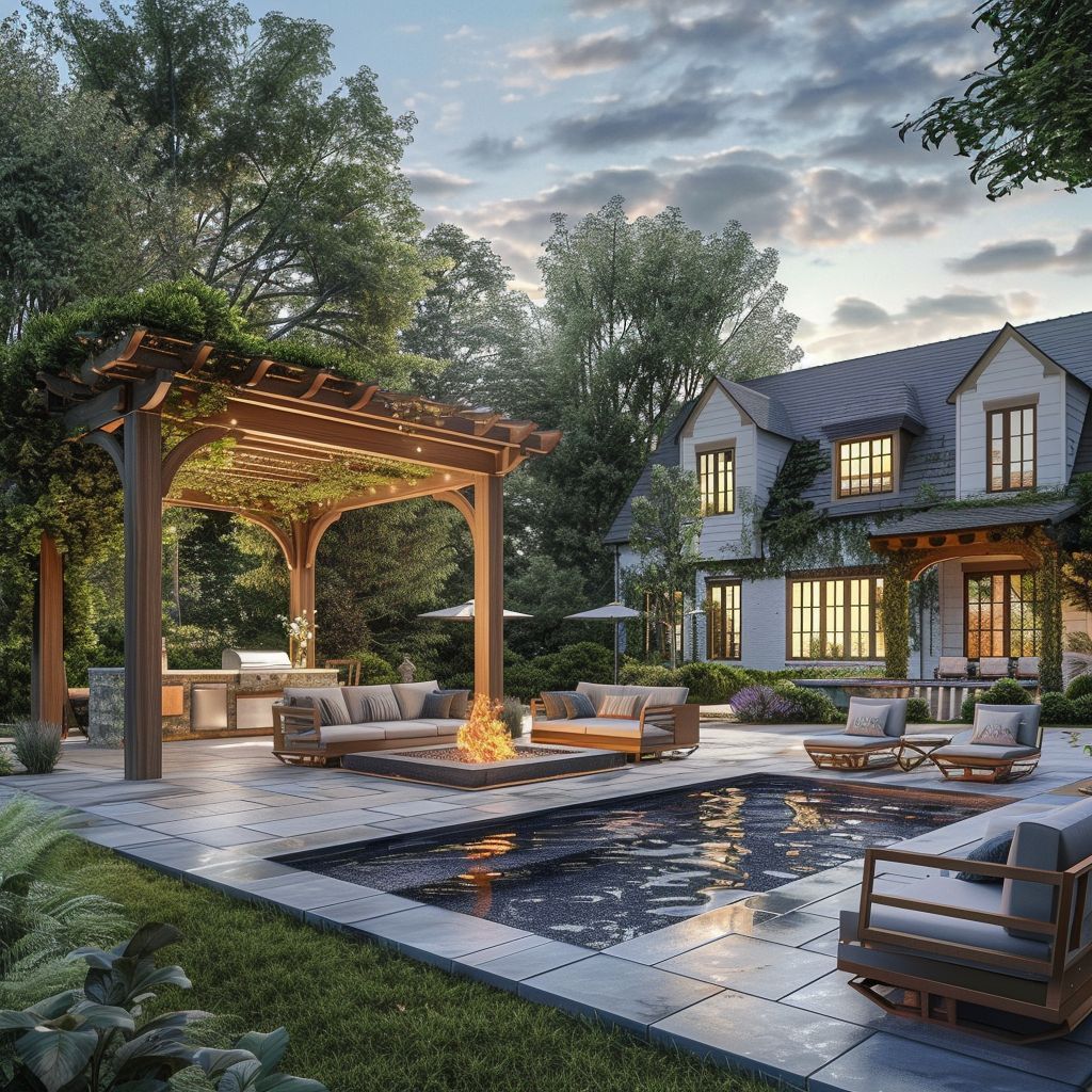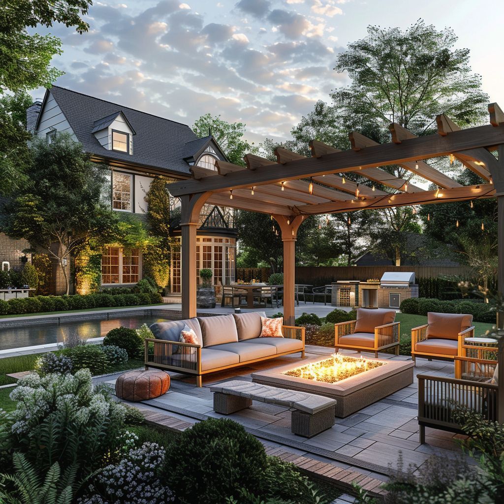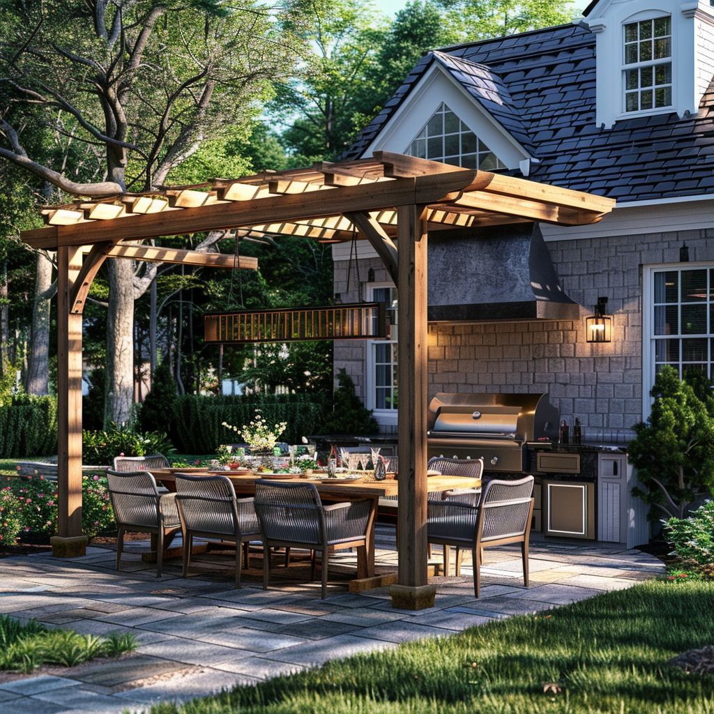Add a touch of elegance with a beautifully designed pergola that provides both shade and style. It’s the perfect framework for climbing plants or a serene seating area.